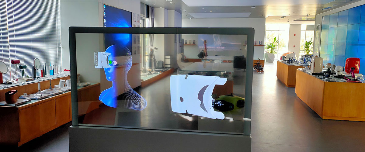 3D全息展示柜的全息幻影成像系統由柜體、分光鏡、射燈、視頻播放設備組成,利用分光鏡成像原理,通過對產品拍攝構建的三維模型進行技術處理,最后將拍攝的產品影像疊加到場景中 ……